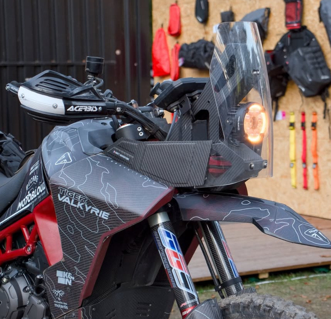 Carénages et tour de navigation carbone pour la Triumph Tiger Valkyrie V3 de Matt Adventure (Africa Eco Race)